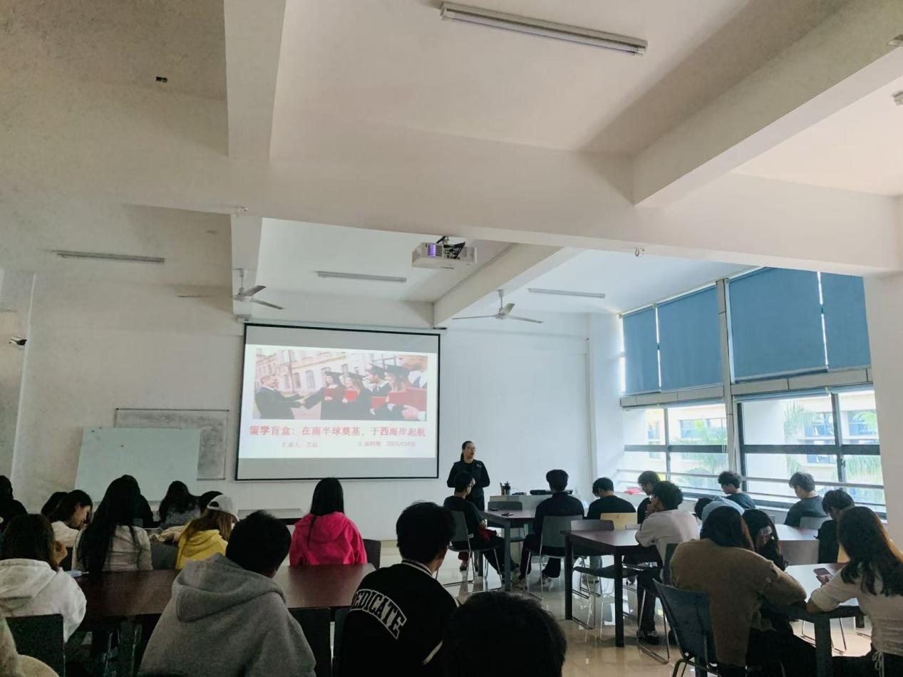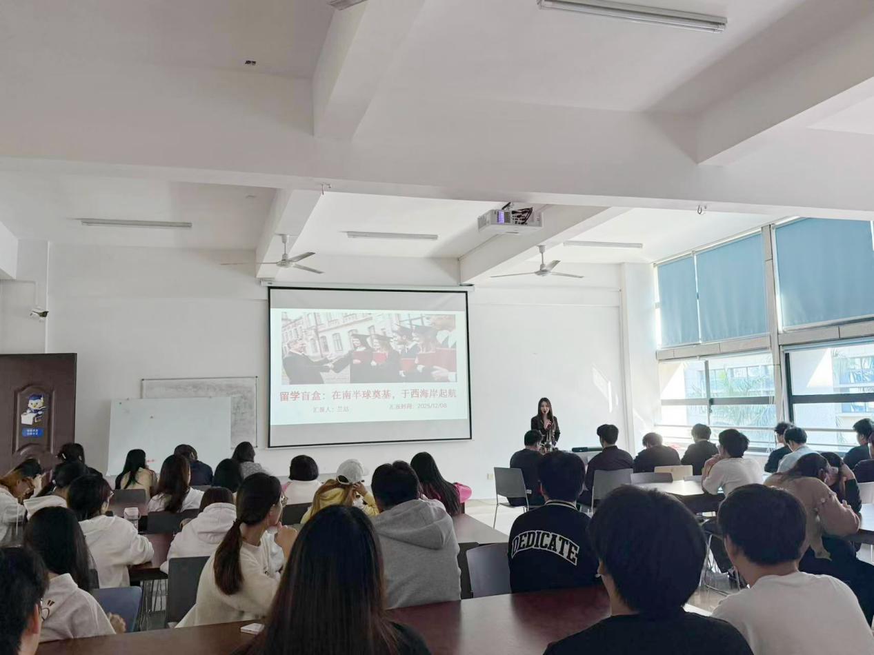 为系统梳理留学分享资源,为学子提供全方位、常态化的留学参考,12月8日下午,我院成功举办第13期留学经验分享会。此次分享内容丰富,涵盖了我院电子商务教研室郑仕真、兰喆两位具有丰富海外经历的老师进行分享。此外海外学院黄杰老师详细讲解了马来西亚三所留学项目的优势与申请攻略,旨在为学生提供多元、真实的留学视角与路径指导。学生们积极参与,现场气氛热烈。